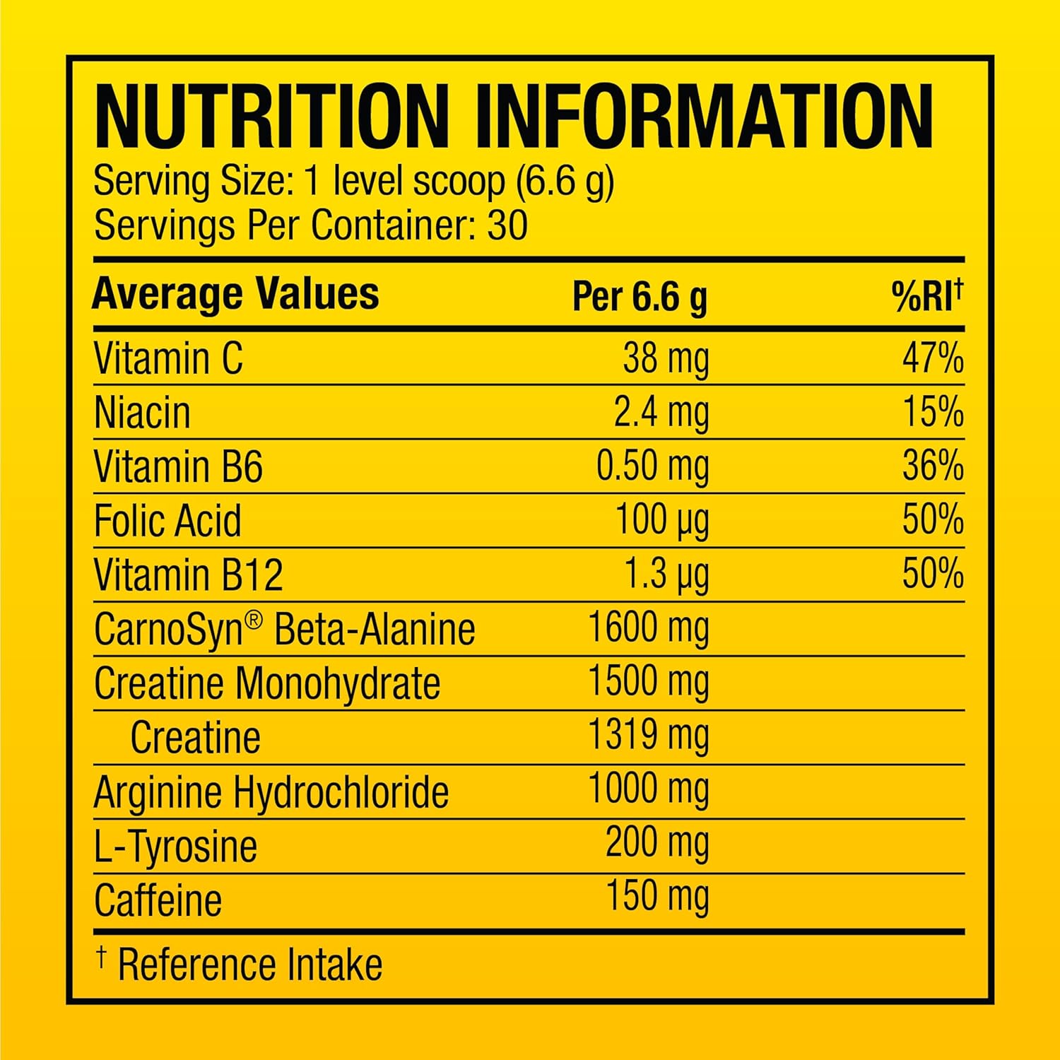 Δοσολογία: Αναμείξτε μία δόση (= 1 scoop = 6.9 γραμμάρια) με 150-200ml νερό και καταναλώστε 20-30 λεπτά πριν την προπόνηση.